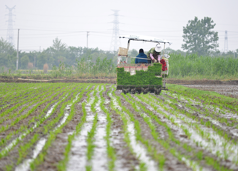 5月6日,农民驾驶插秧机在安徽省巢湖市中垾镇一家庭农场进行插秧作业。