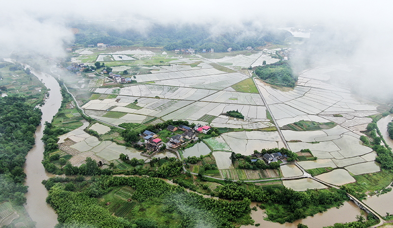 5月6日拍摄的湖南省资兴市唐洞街道镜塘村田园风光(无人机照片)。