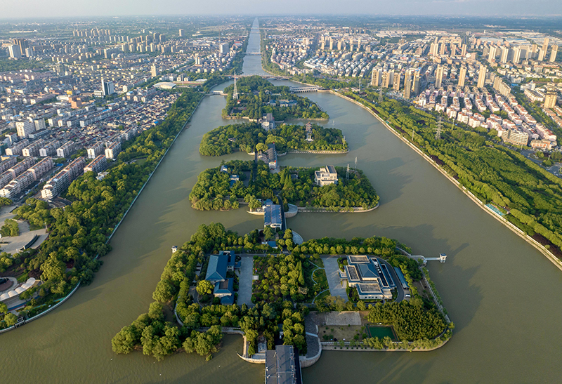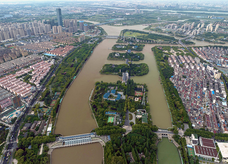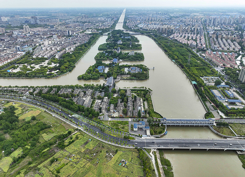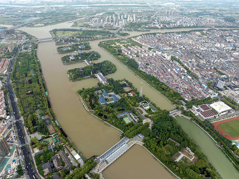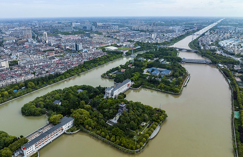 5月7日在江苏省扬州市拍摄的江都水利枢纽(无人机照片)。