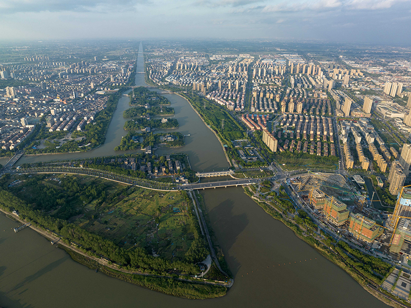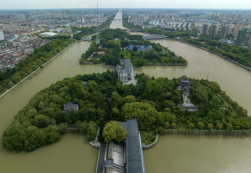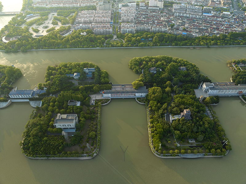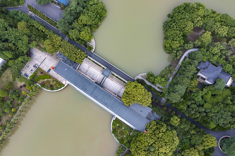 5月7日在江苏省扬州市拍摄的江都水利枢纽(无人机全景照片)。