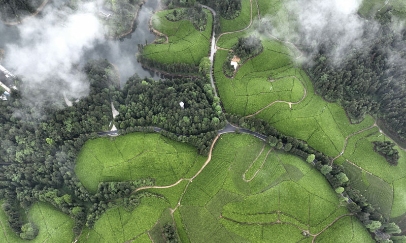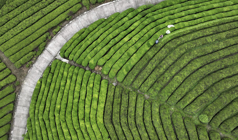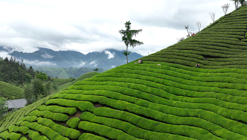 初夏时节,湖北省鹤峰县走马镇的茶园郁郁葱葱,美如画卷。近年来,鹤峰县在发展壮大茶产业的同时,探索茶旅融合之路,打造多座集采摘、观光于一体的茶园,让茶农实现茶叶和旅游双重经济收入,助力乡村振兴。