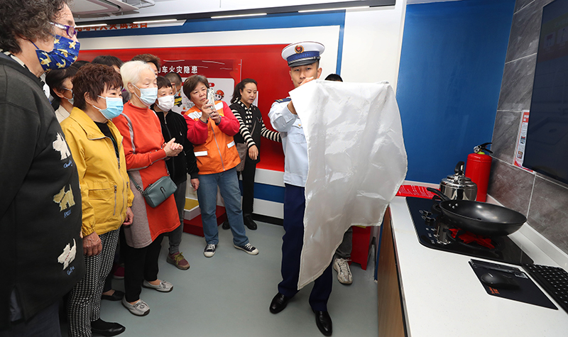 当日,上海市长宁区应急消防科普教育基地迎来众多社区居民。来自长宁区消防救援支队的消防员在这里围绕城市生活中的不同灾难场景,向居民演示并讲解电梯被困、电动车安全充电、厨房火灾扑救等多种灾害场景的处理方法,并结合多年消防工作经验,向市民讲解日常火灾防控常识和如何发现、消除居家火灾隐患、扑救初期火灾、组织疏散逃生等常识,引导社区居民树立消防安全意识,增强自防自救能力。