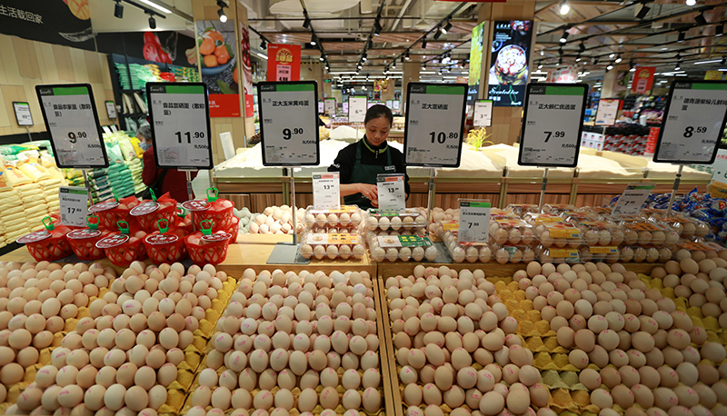 5月11日,贵州省黔南布依族苗族自治州都匀市一超市工作人员在整理待售的鸡蛋。