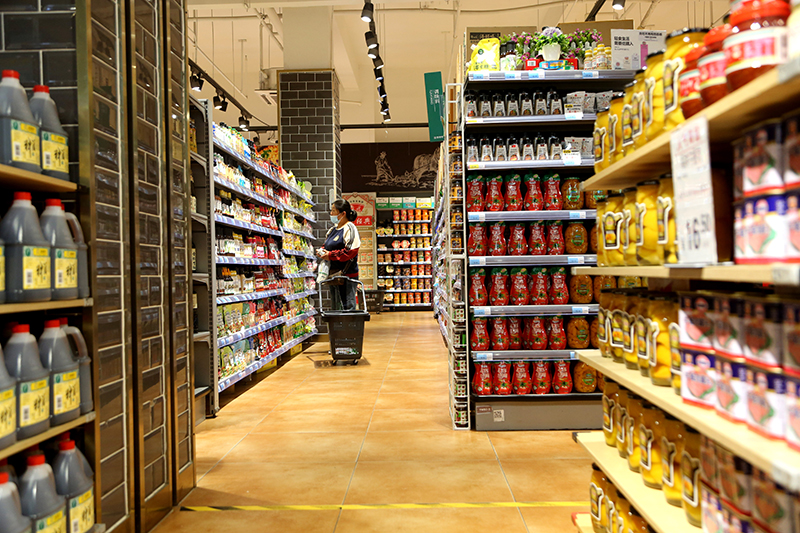 5月11日,顾客在江苏省扬州市邗江区一家超市购物。