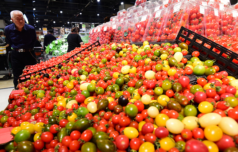 5月11日,消费者在河北省邯郸市丛台区一家超市内选购番茄。