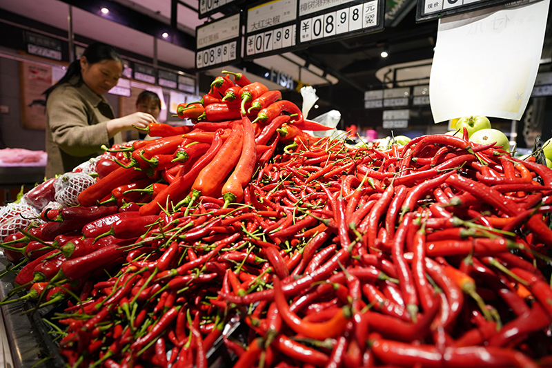 5月11日,消费者在湖南省怀化市通道侗族自治县一家生活超市内选购蔬菜。