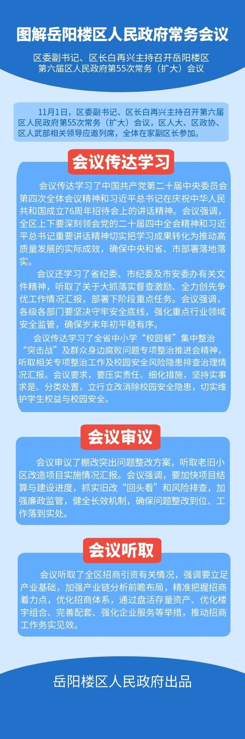 11月1日上午,区委副书记、区长白再兴主持召开区第六届人民政府第55次常务(扩大)会议,区人大、区政协、区人武部相关领导应邀列席,全体在家副区长参加。