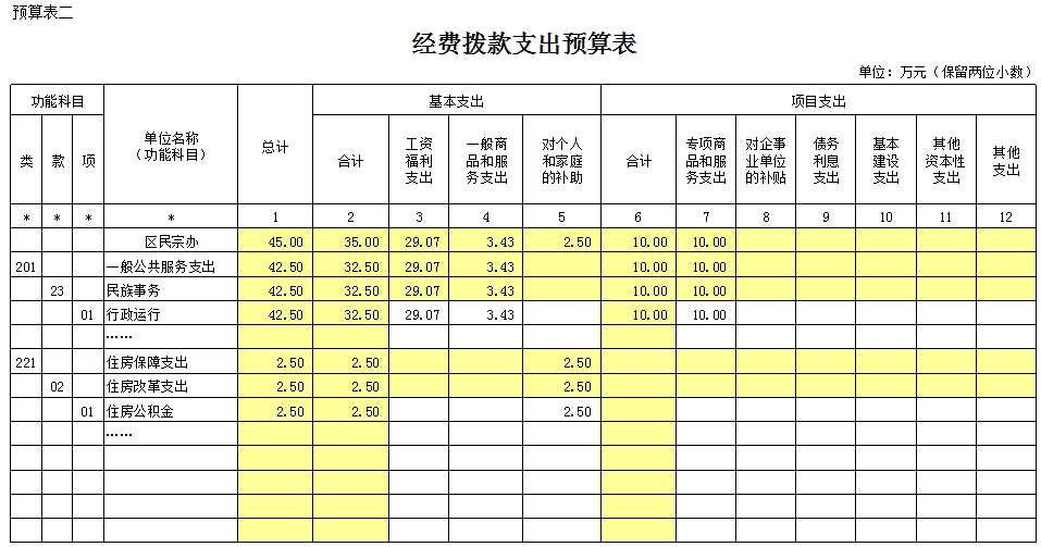 预算总支出45万元,其中:基本支出45.07万元(工资福利支出29.07万元、一般商品和服务支出3.43万元、对个人和家庭的补助支出2.5万元);项目支出10万元。
