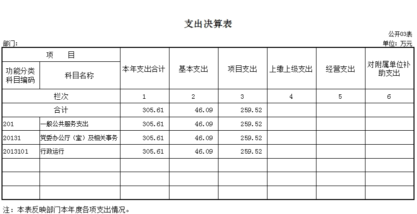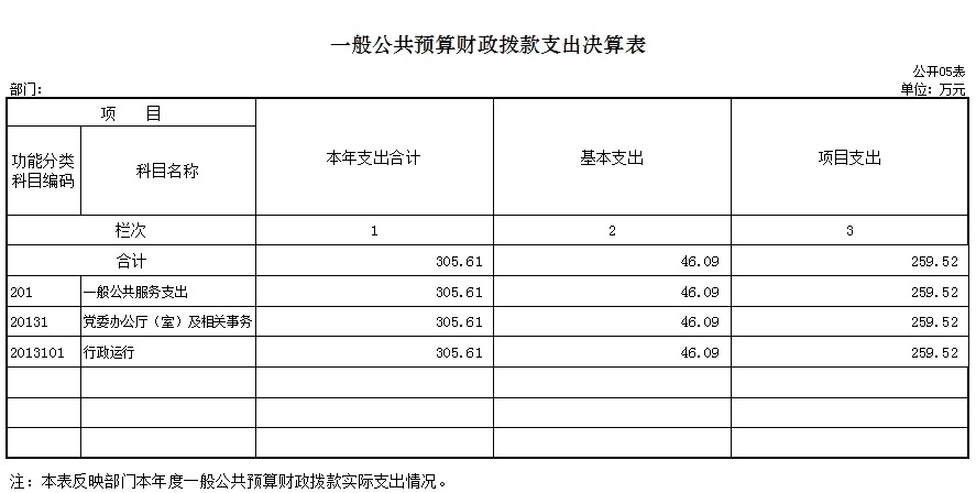 本年支出合计305.61万元,其中:基本支出46.09万元,占15.08%;项目支出259.52万元,占84.92%