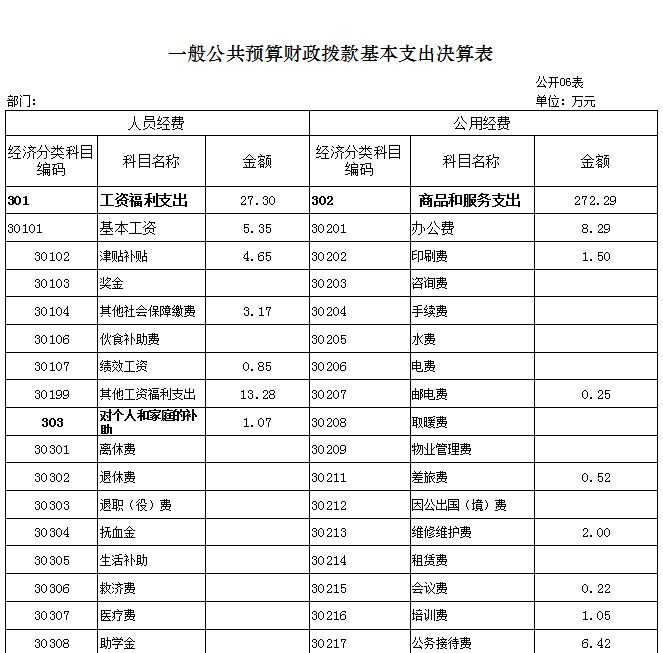 2016年度财政拨款支出305.61万元,其中:人员经费28.37万元,主要包括:基本工资、津贴补贴、其他社会保障缴费、其他工资福利支出、住房公积金、其他对个人和家庭的补助支出;公用经费277.24万元,主要包括:办公费、印刷费、邮电费、差旅费、维修(护)费、会议费、培训费、公务接待费、工会经费、公务用车运行维护费、其他商品和服务支出、办公设备购置。