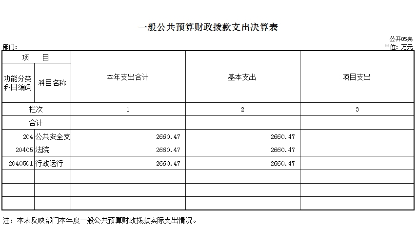本年度区法院财政拨款支出决算数26604697.45元,均为公共安全支出。