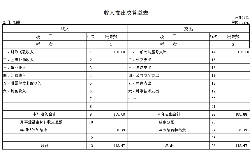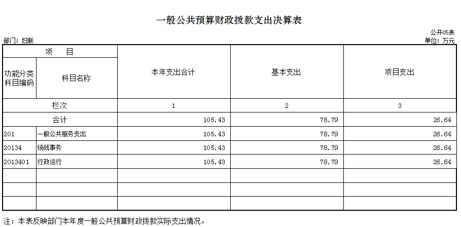 本年度妇联财政拨款支出决算数1134653.45元,均为一般公共服务支出。