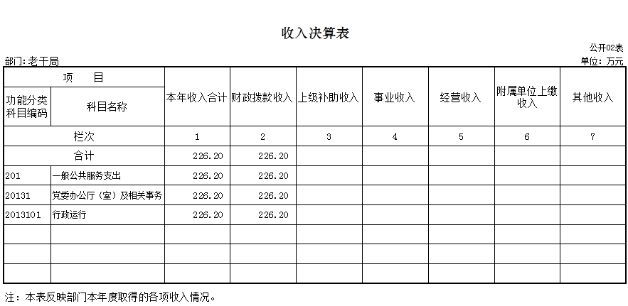 2016年总收入为226.1万元,其中:基本支出拨款收入217.7万元占全年总收入的71%,项目支出拨款收入92.3万元占全年总收入的29%。