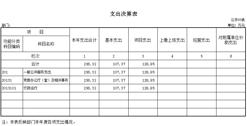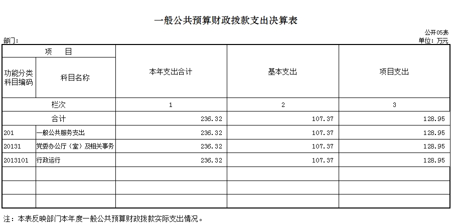 2016年全年总支出为236.3万元,其中:基本支出107.3万元,占总支出61.1%的,项目支68.5万元占总支出的38.9%。