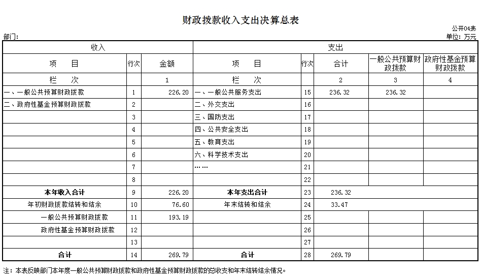 2016年全年预算总收入为226.1万元,其中工资福利支出拨款84.7万元,一般商品和服务支出89.7万元,对个人和家庭补助支出20.2万元,项目支出68.5万元。2016年决算总支出为236.3万元,其中工资福利支出84.7万元,商品和服务支出89.7万元,对个人家庭补助支出20.2万元,项目支出68.5万元。2016年决算支出超出预算10.2万元,主要是在工资福利及项目支出方面,主要原因2016年财政追加新增项目经费及追加人员绩效考核奖励经费等情况。