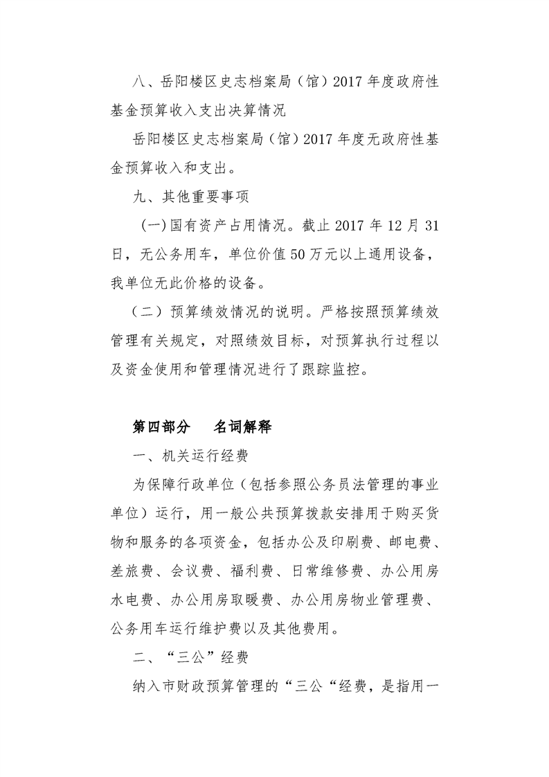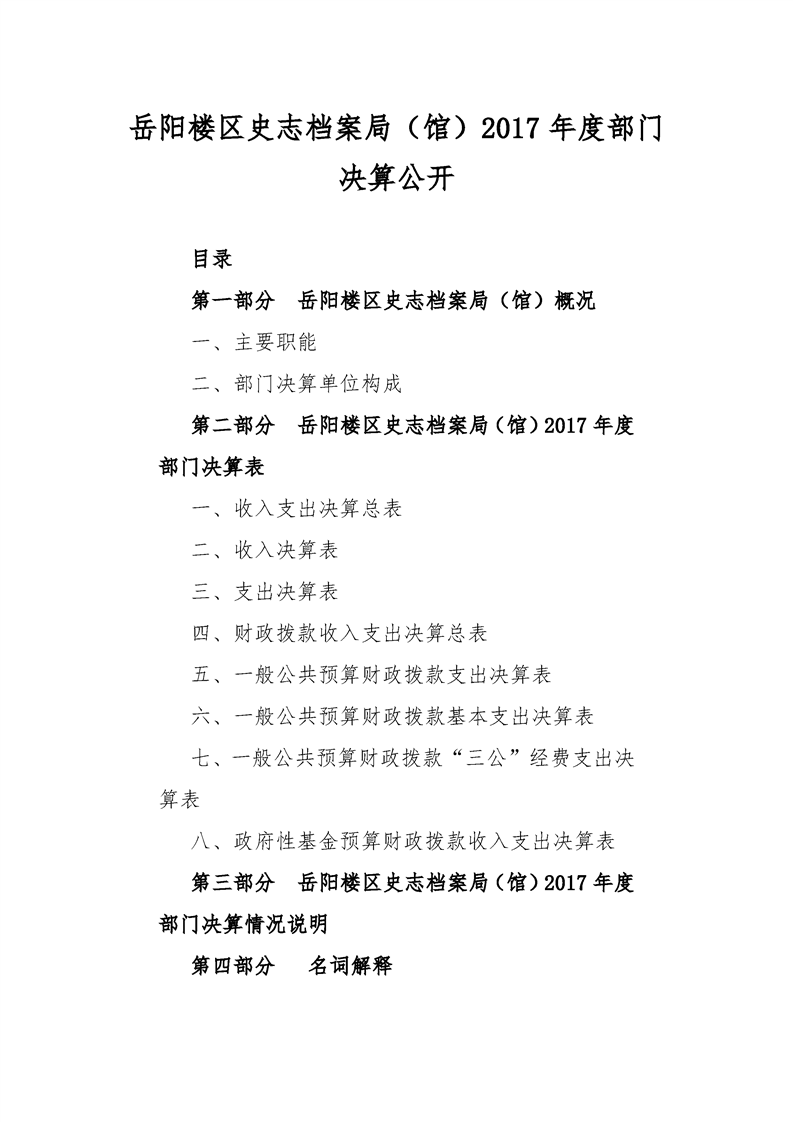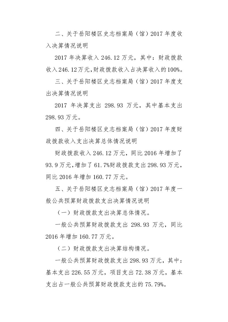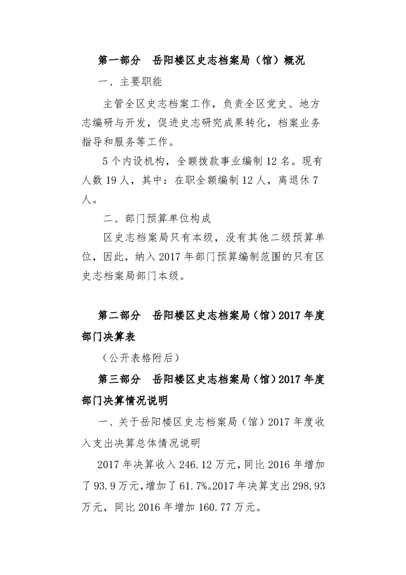 岳阳楼区史志档案局(馆)2017年度部门决算公开