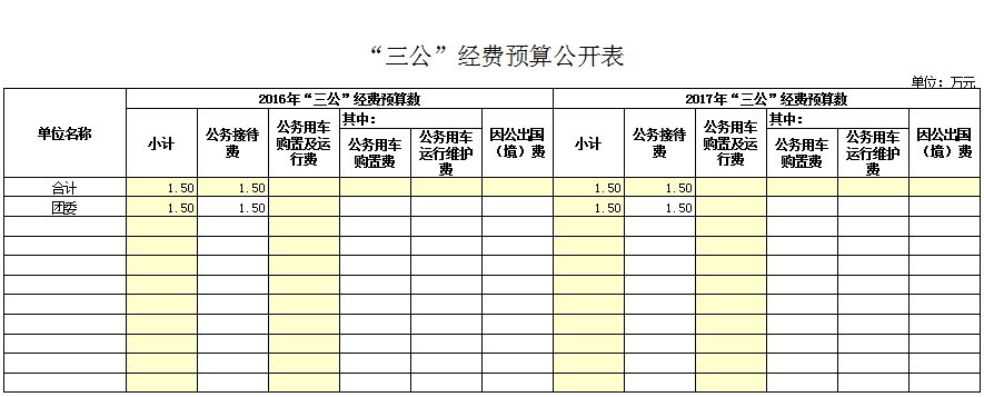 2017年“三公”经费预算数为1.5万元,其中,公务接待费 1.5万元。2017年“三公”经费预算与2016年持平。