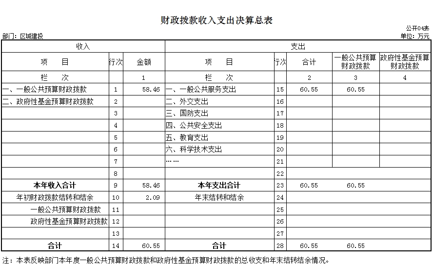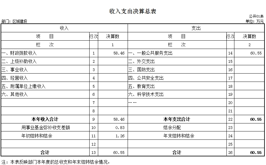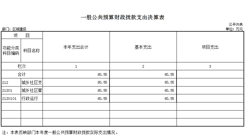 岳阳市岳阳楼区城市建设投资管理中心2016年度财政拨款收、支总决算60.55万元。