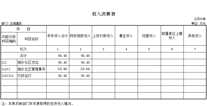岳阳市岳阳楼区城市建设投资管理中心收入合计58.46万元,其中:财政拨款收入58.46万元.