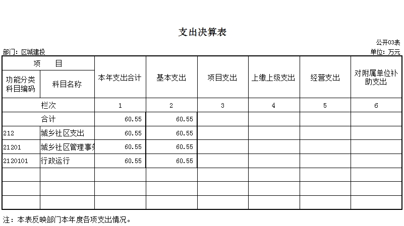 1.一般公共服务支出60.55万元,主要用于在职职工工资、保障机构正常运转以及开展业务工作而发生的基本支出和项目支出。