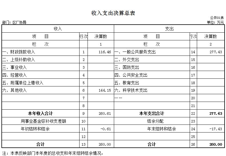 全年收入总计260.01万元。其中包括:财政拨款收入116.46万元,为当年从区财政取得的一般公共预算拨款和政府性基金预算拨款;非税返还收入144.15,主要用于大厂大校项目协调补偿。
