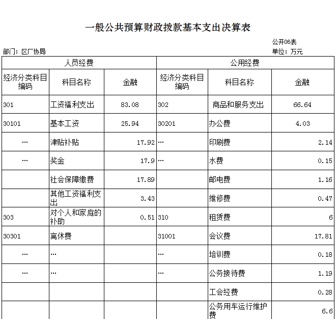 (二)公用经费185.07万元。主要包括:办公费、水费、电费、邮电费、物业管理费、差旅费、维修(护)费、租赁费、会议费、培训费、公务接待费、劳务费、委托业务费、工会经费、福利费、公务用车运行维护费、其他交通费用、其他商品和服务支出、办公设备购置。