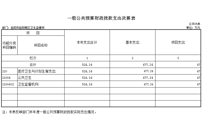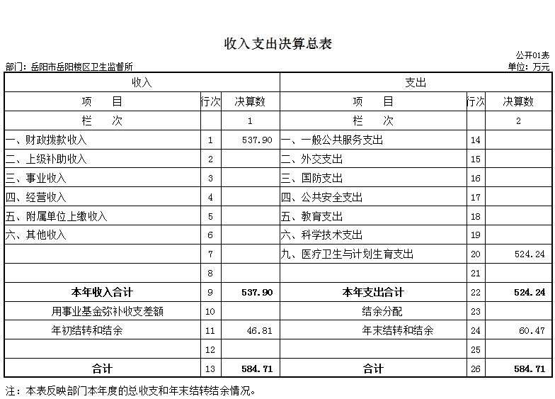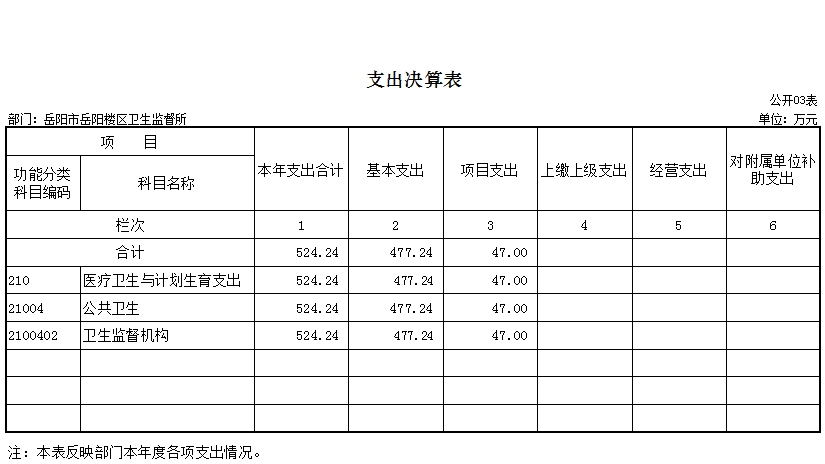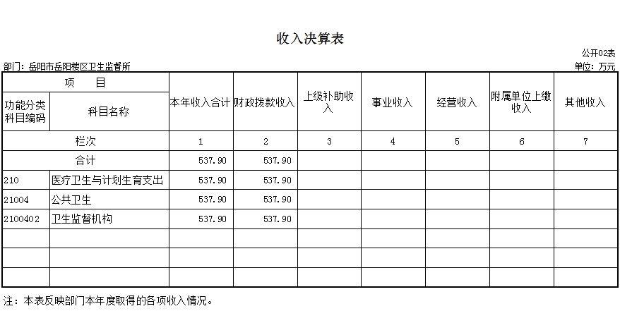 第二部分 岳阳楼区卫生监督所2016年度部门决算表(公开表格附后)