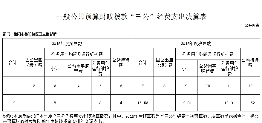 (1)2016 年度“三公”经费财政拨款支出预算为12万元,支出决算为13.53万元,完成预算的112.75%