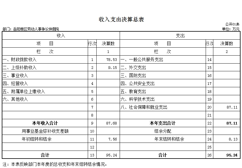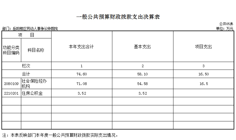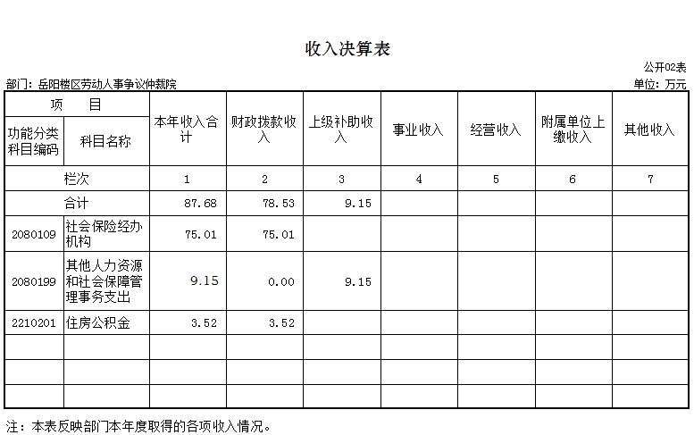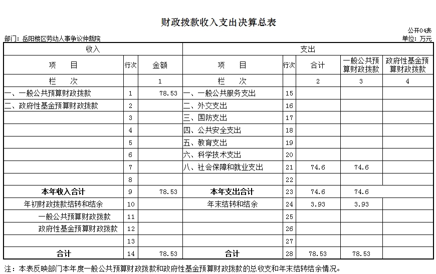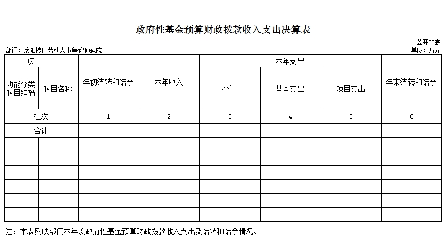 岳阳楼区劳动人事争议仲裁院无政府性基金预算收入支出。