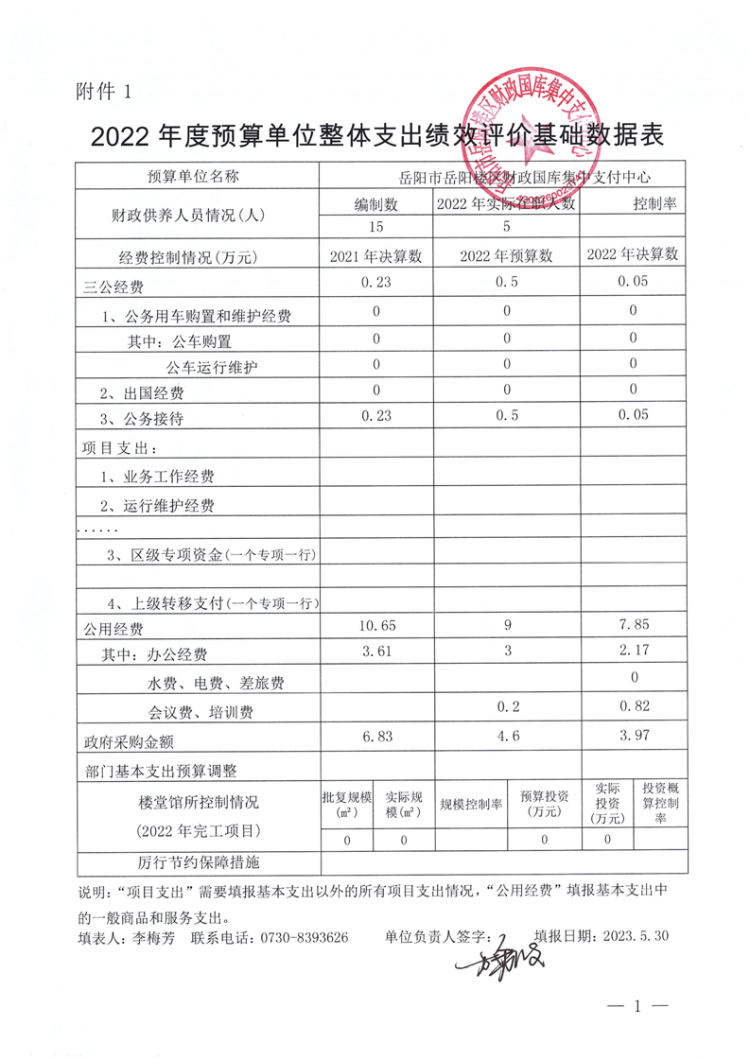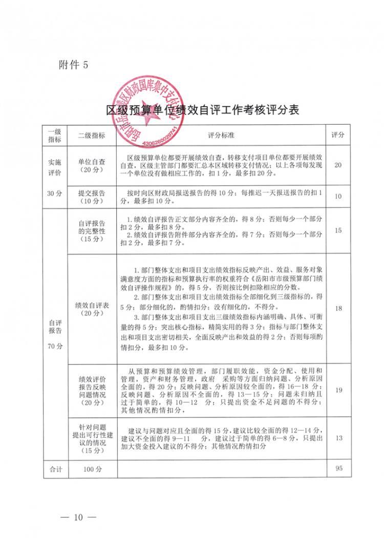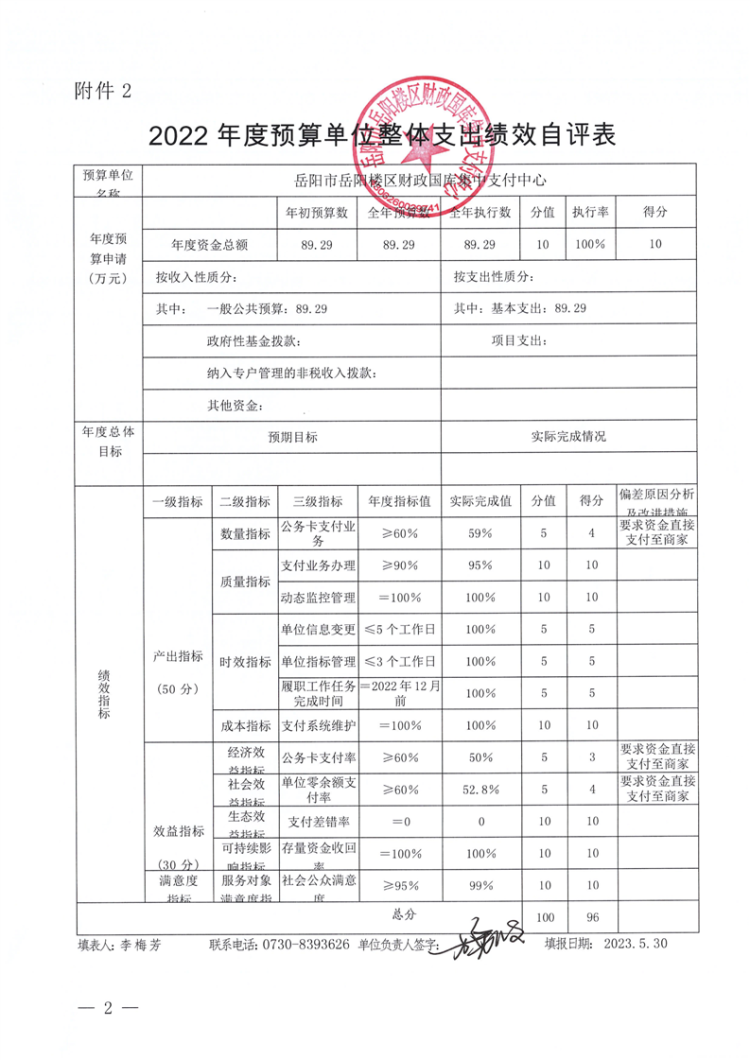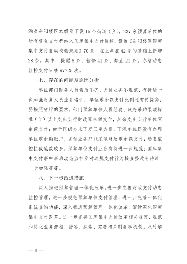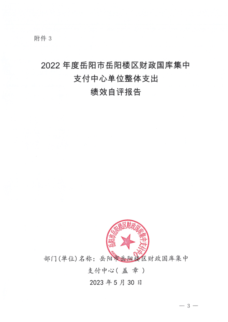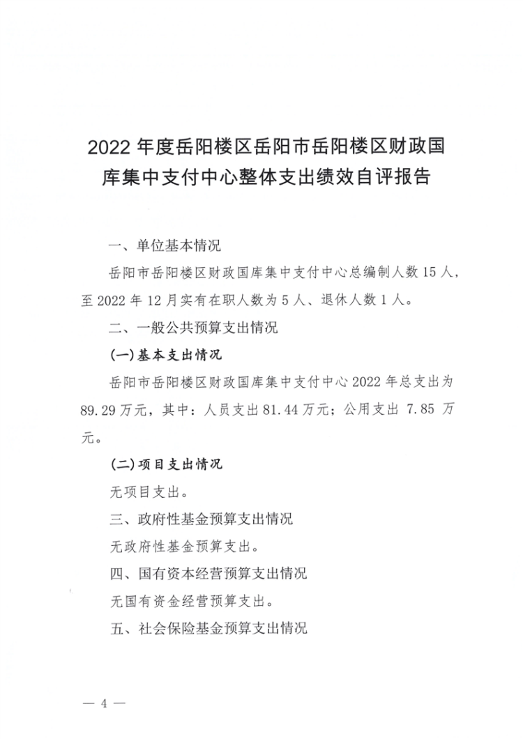 岳阳楼区财政国库集中支付中心2022年绩效评价公开