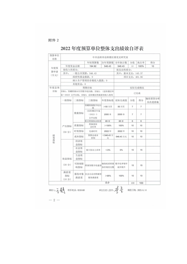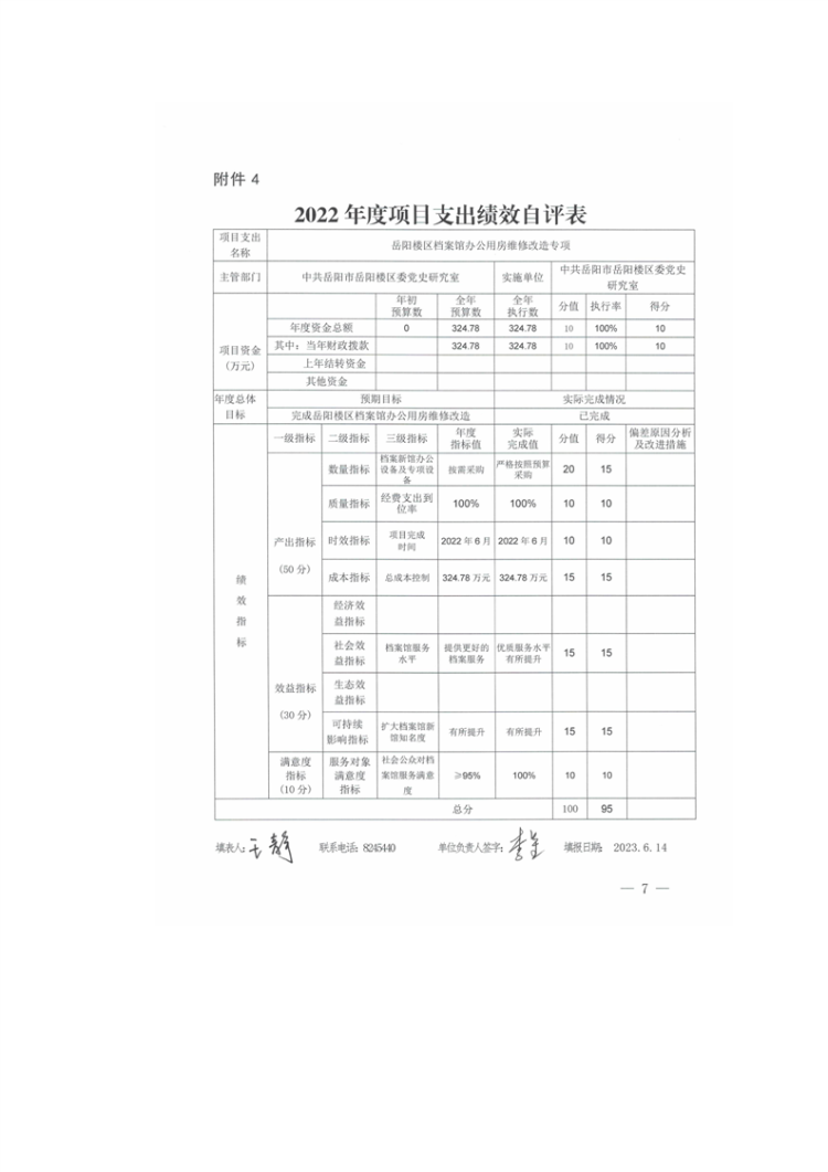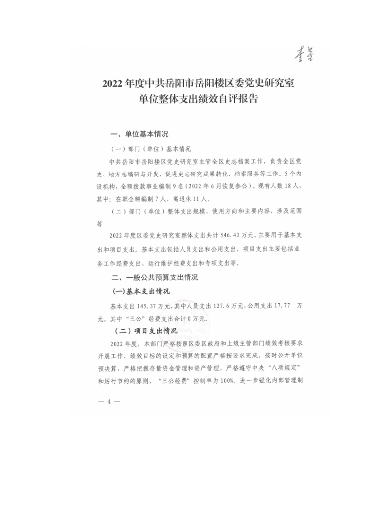 中共岳阳楼区委党史研究室2022年度绩效自评