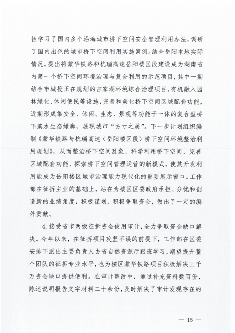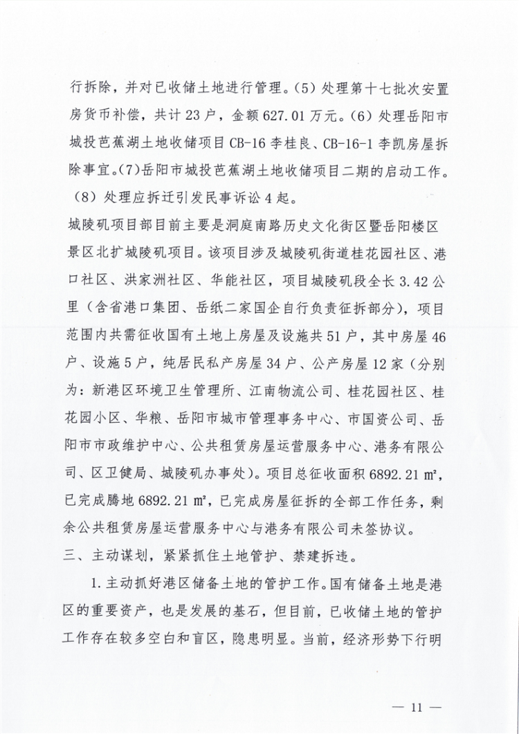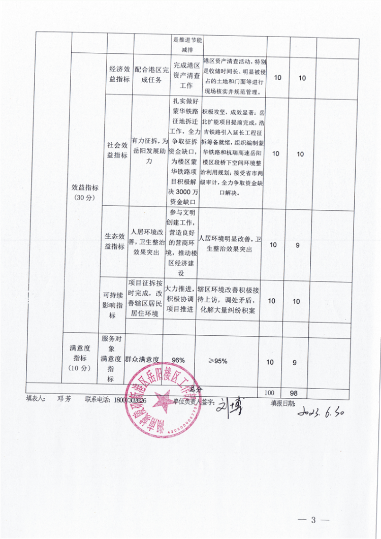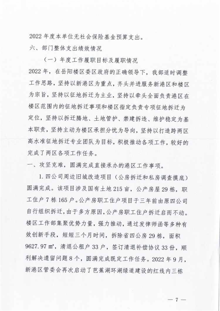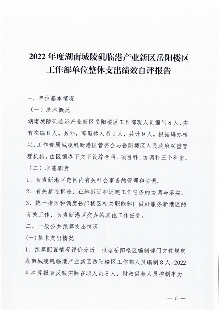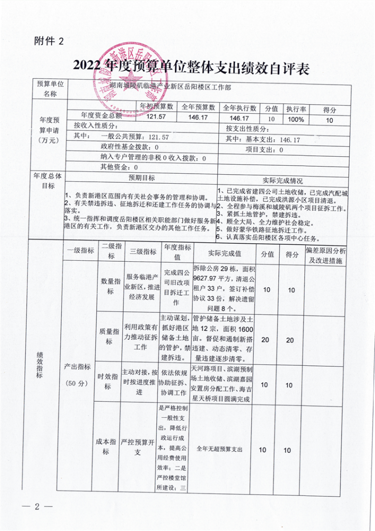湖南城临矶临港产业新区岳阳楼区工作部2022年部门绩效自评