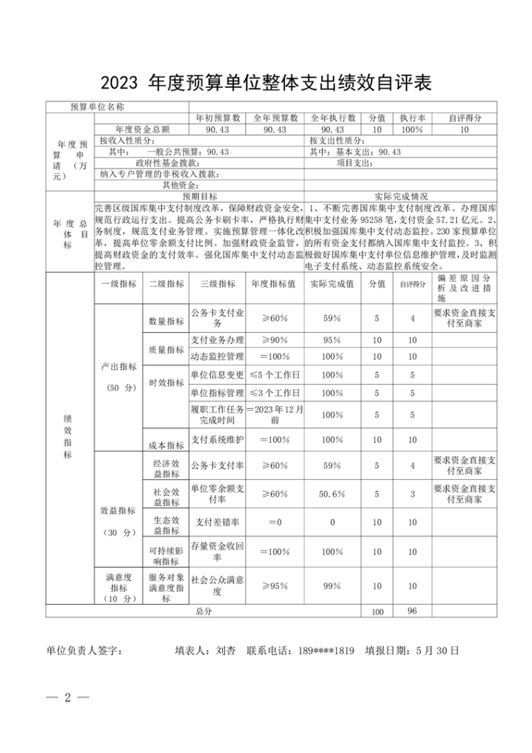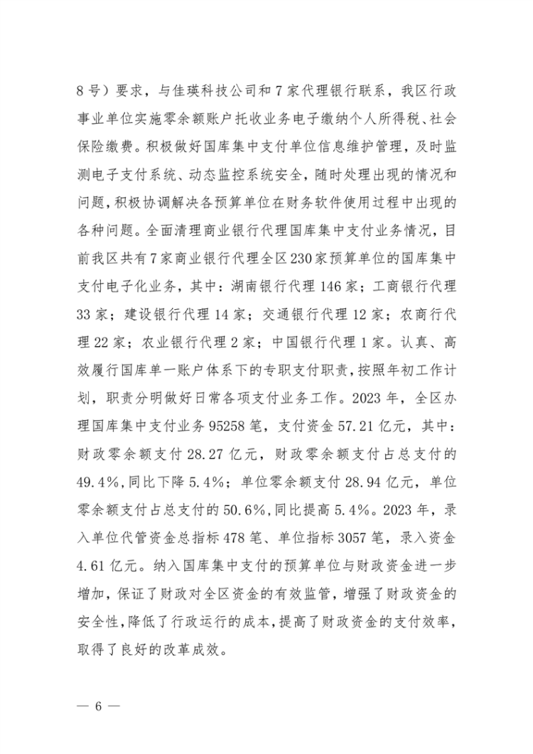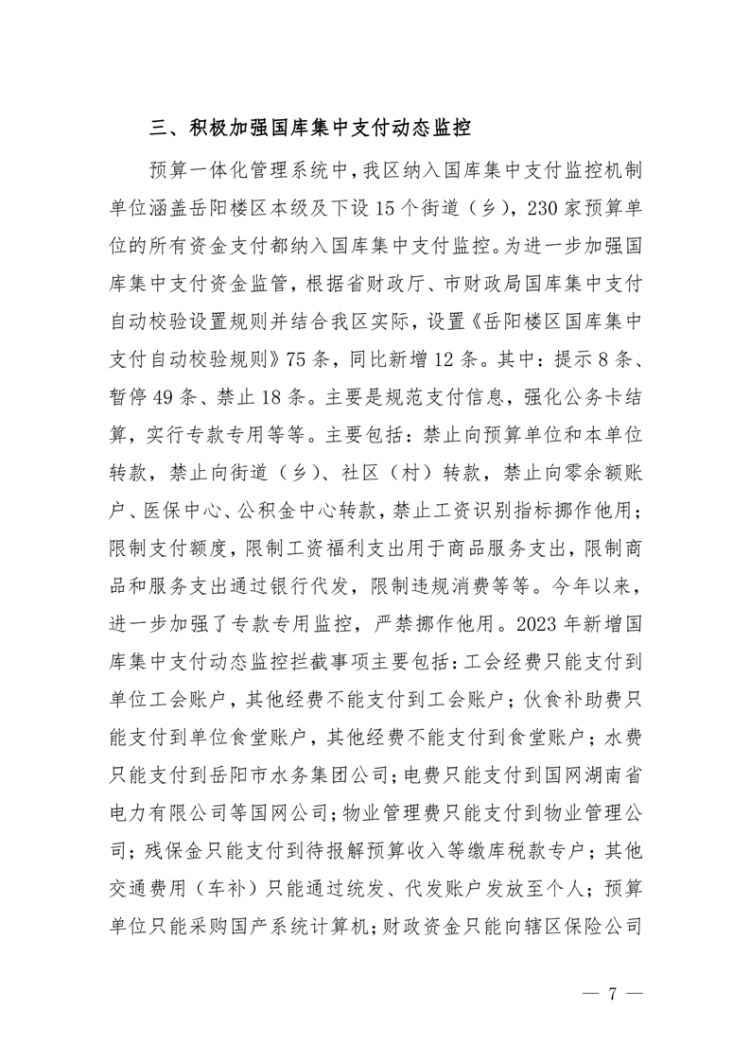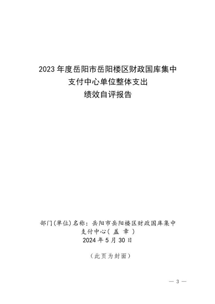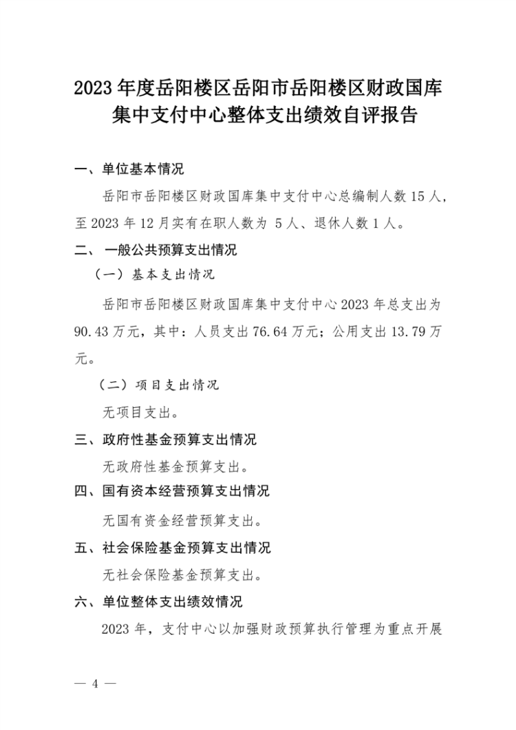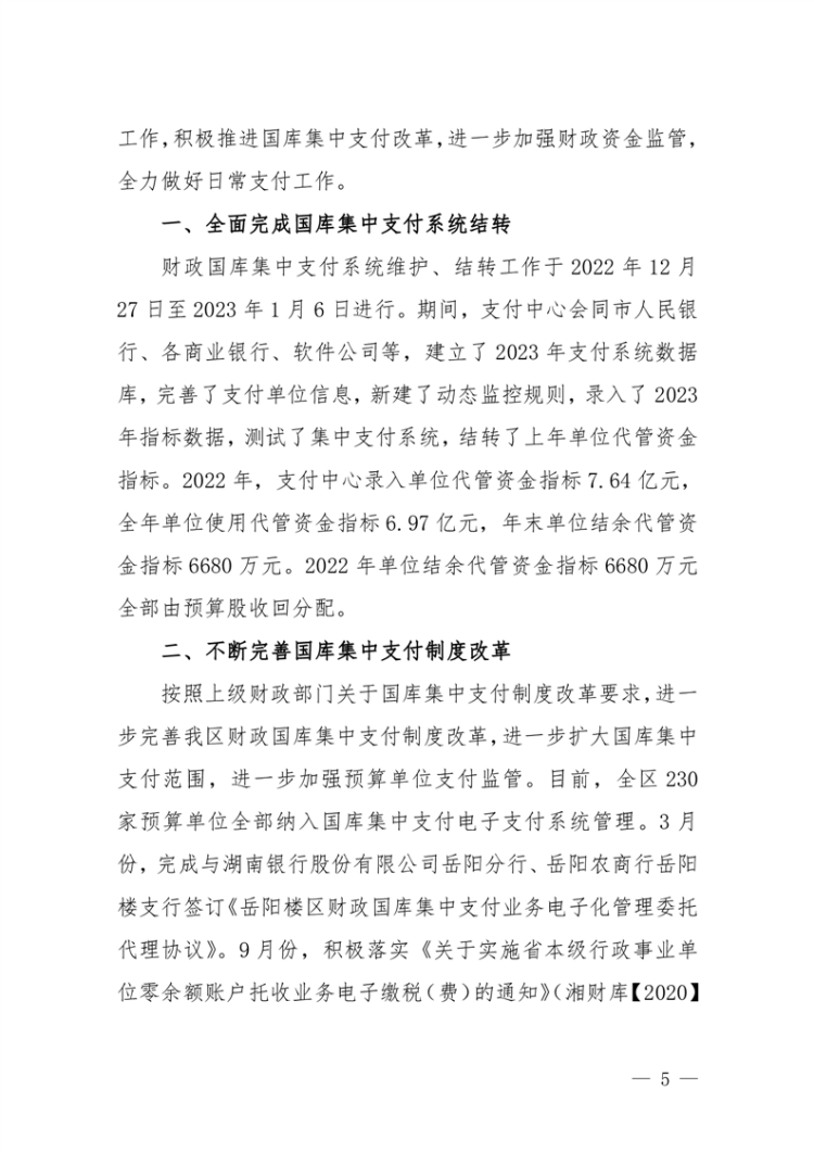 岳阳楼区财政国库集中支付中心2023年绩效评价公开