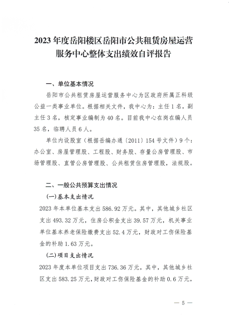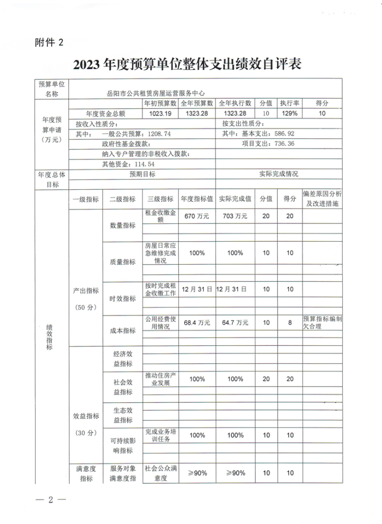 岳阳市公共租赁房屋运营服务中心2023年整体支出绩效