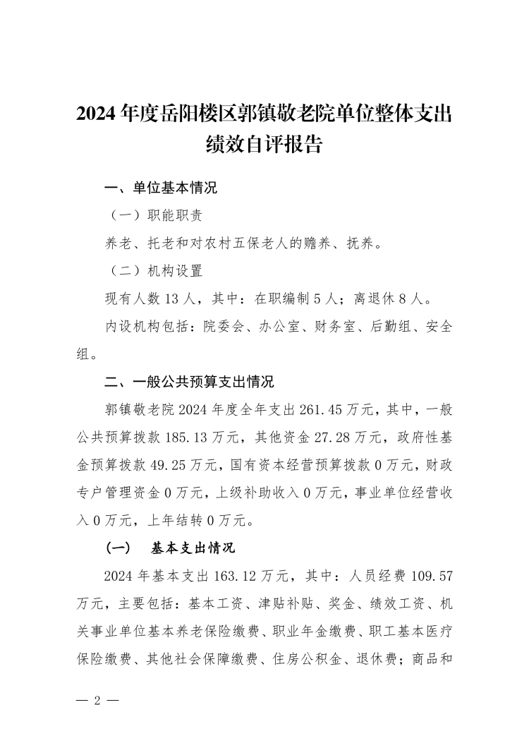 2024年度郭镇敬老院单位整体支出绩效评价