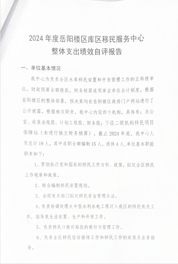 2025年岳阳楼区库区移民服务中心绩效自评报告公开