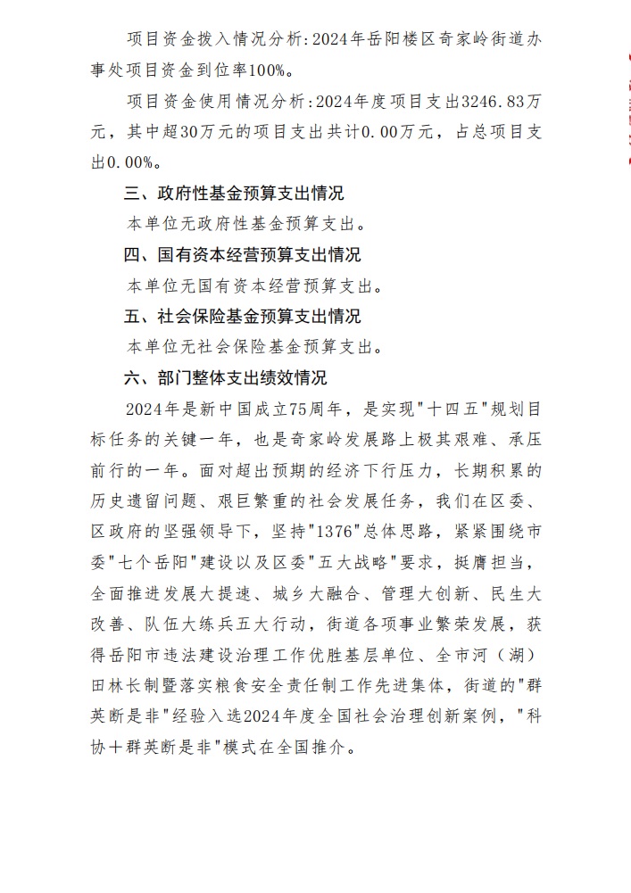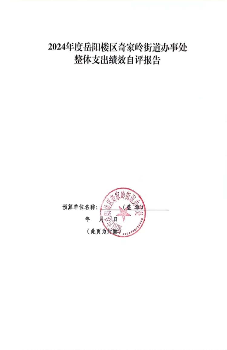 2024年度岳阳楼区奇家岭街道办事处整体支出绩效自评报告.pdf