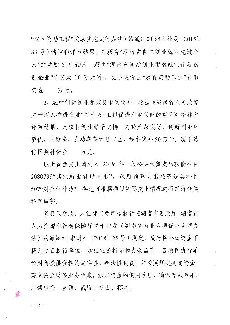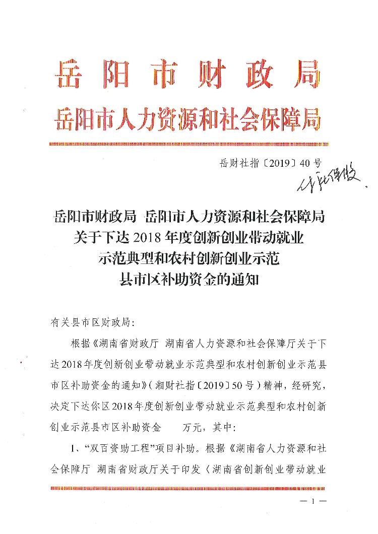 社指【2019】40号下达2018年度创新创业带动就业示范典型和农村创新创业示范县市区补助资金的通知