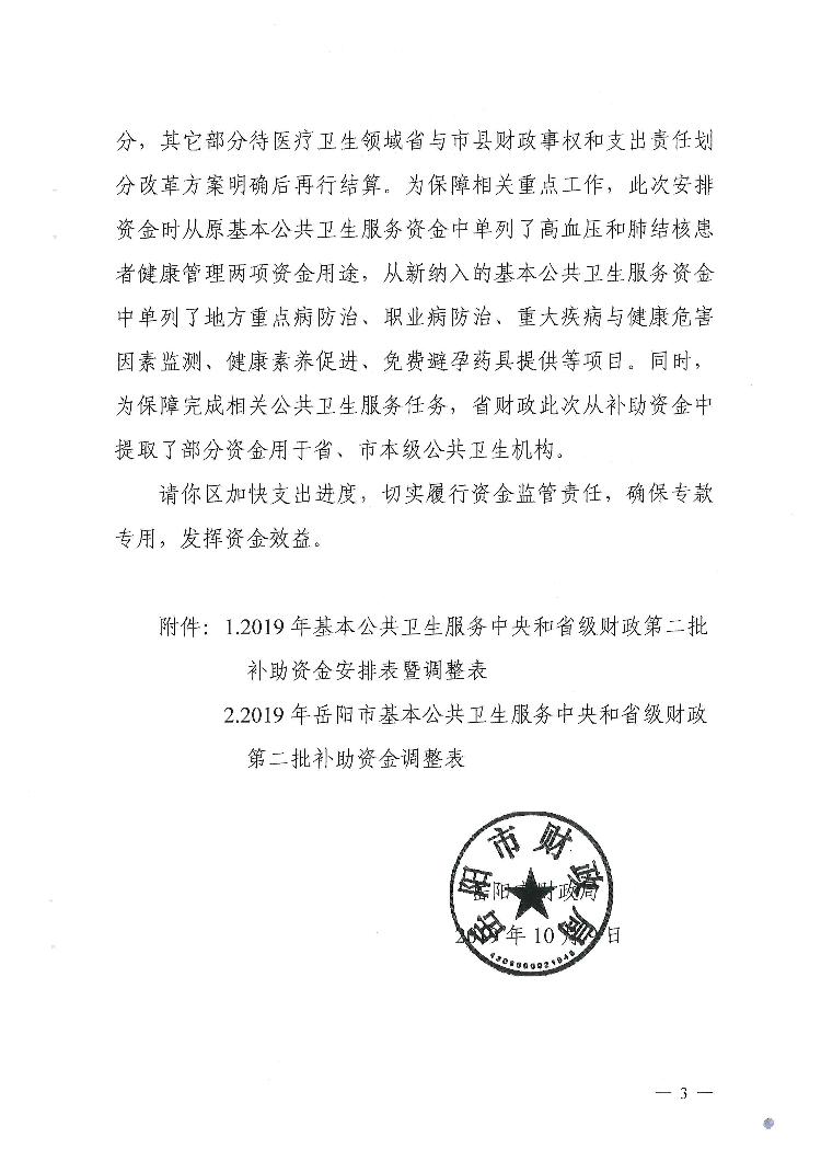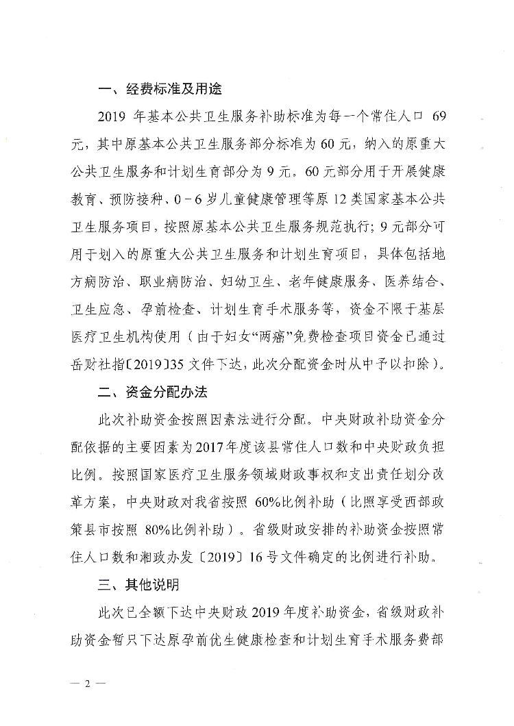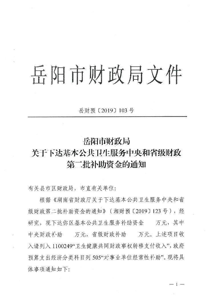预【2019】103号下达基本公共卫生服务中央及省级财政第二批补助资金的通知