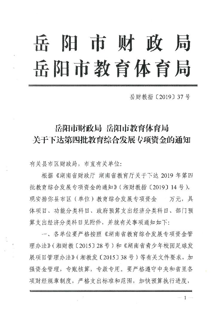 教指【2019】37号下达第四批综合教育发展专项资金的通知