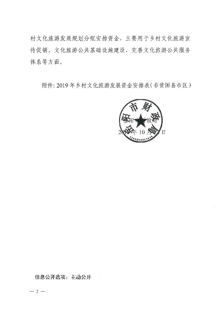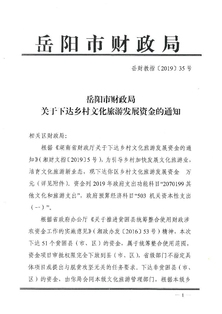 教指【2019】35号下达乡村文化旅游发展资金的通知