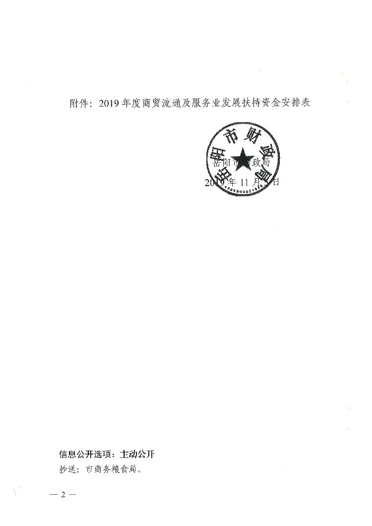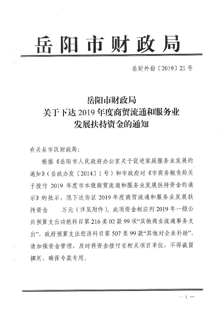 外指【2019】21号下达商贸流通和服务业发展扶持资金的通知