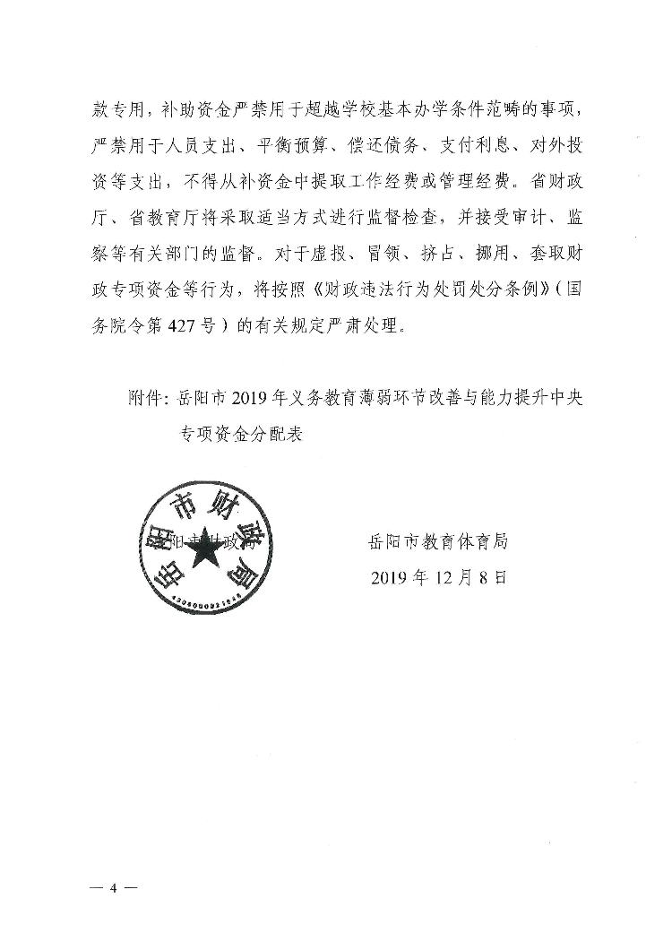 财预【2019】120号 下达义务教育薄弱环节改善与能力提升中央专项资金的通知