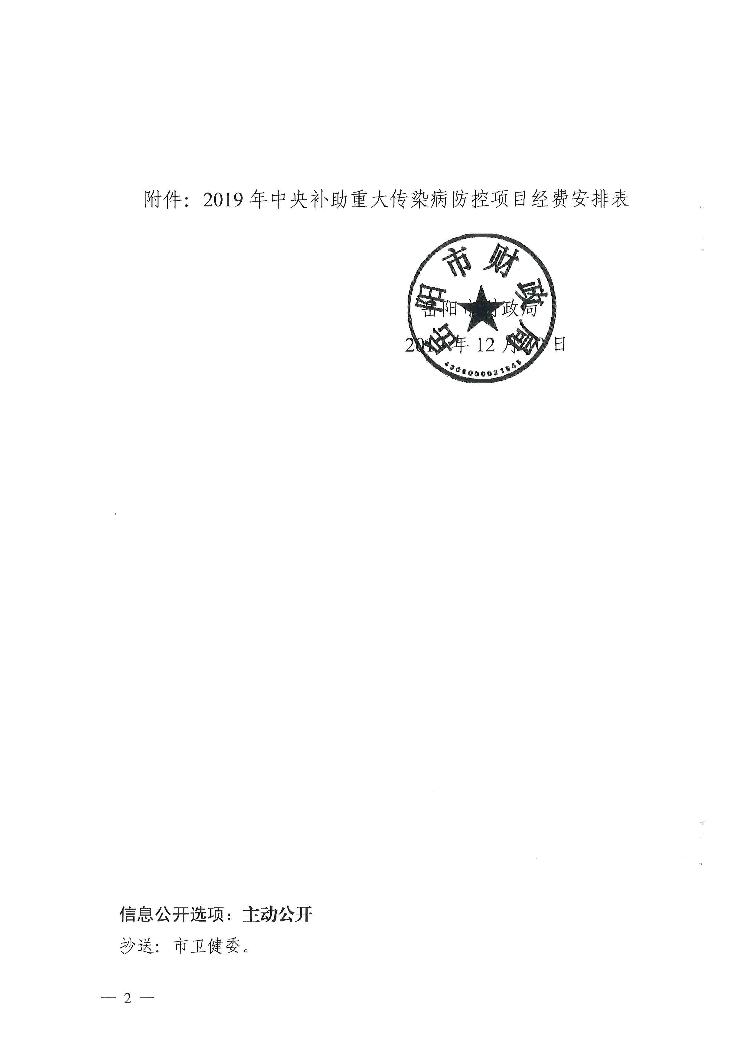 社指【2019】59号下达中央补助重大传染病防控项目经费的通知