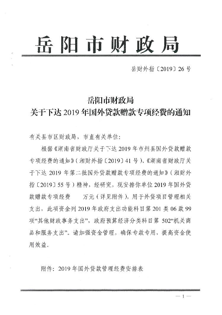 外指【2019】26号下达2019年国外贷款赠款专项经费的通知