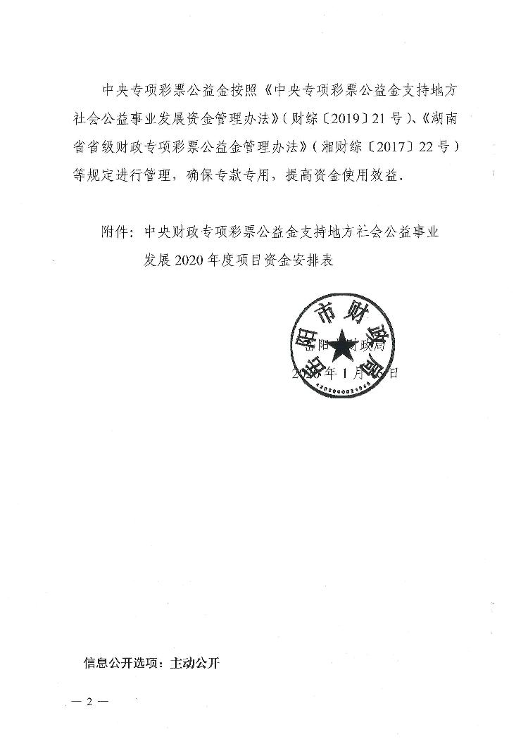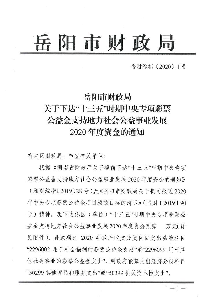岳财综指【2020】1号“十三五”时期中央专项彩票公效益金支持地方社会公益事业发展2020年度资金的通知