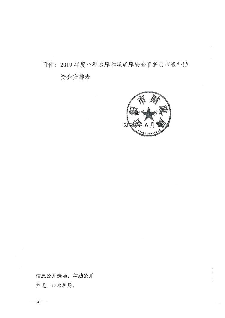 岳财农指【2020】8号下达2019年度小型水库和尾矿库安全管理员市级补助资金的通知