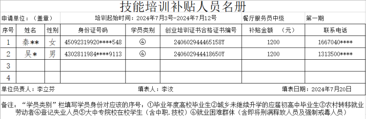 岳阳市宏学职业技能培训学校于2024年7月3日至7月12日组织开展了2024年第一期餐厅服务员(中级)培训,经考试检验合格,此次培训学员中2人考试合格,获得了培训合格证书。