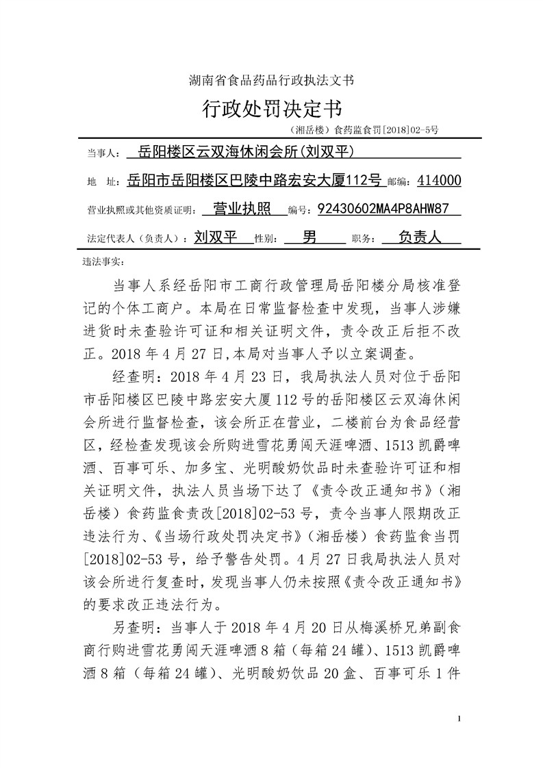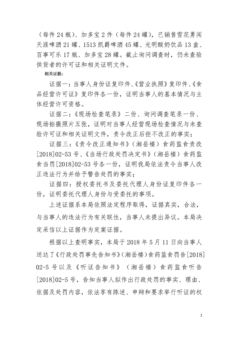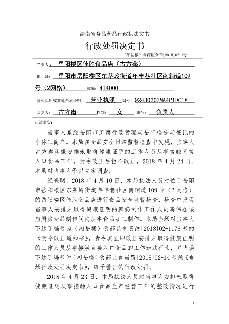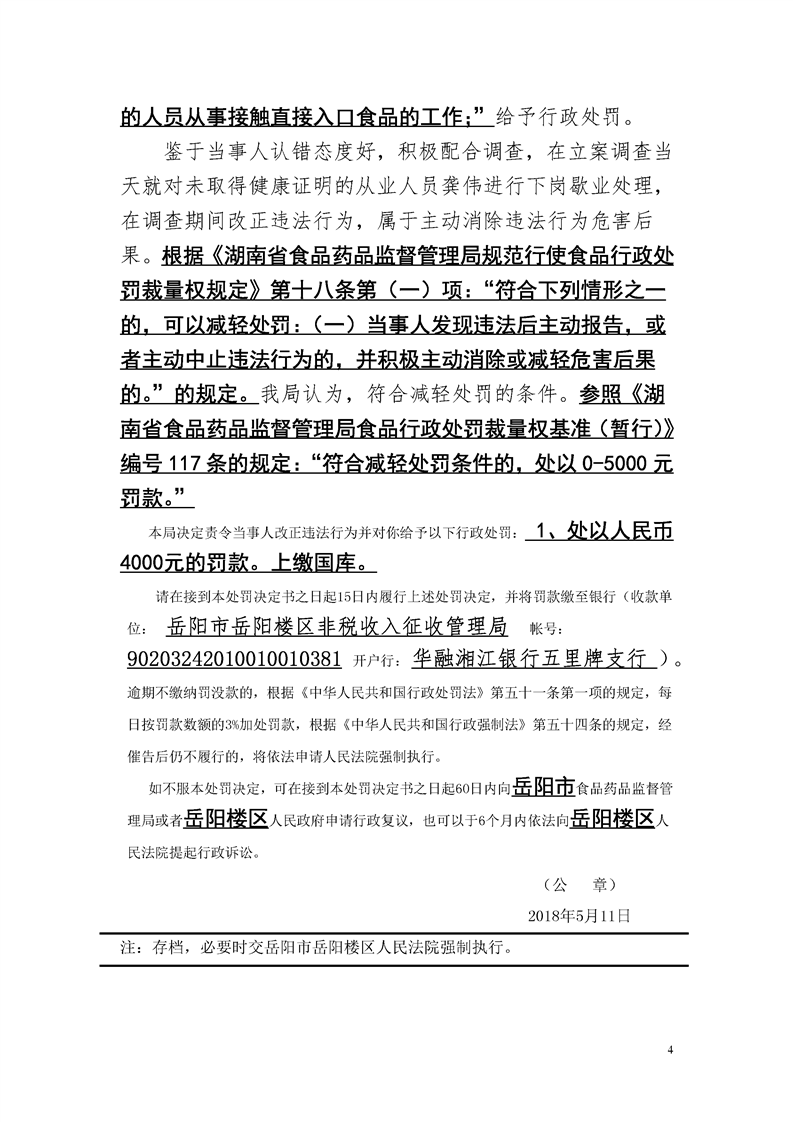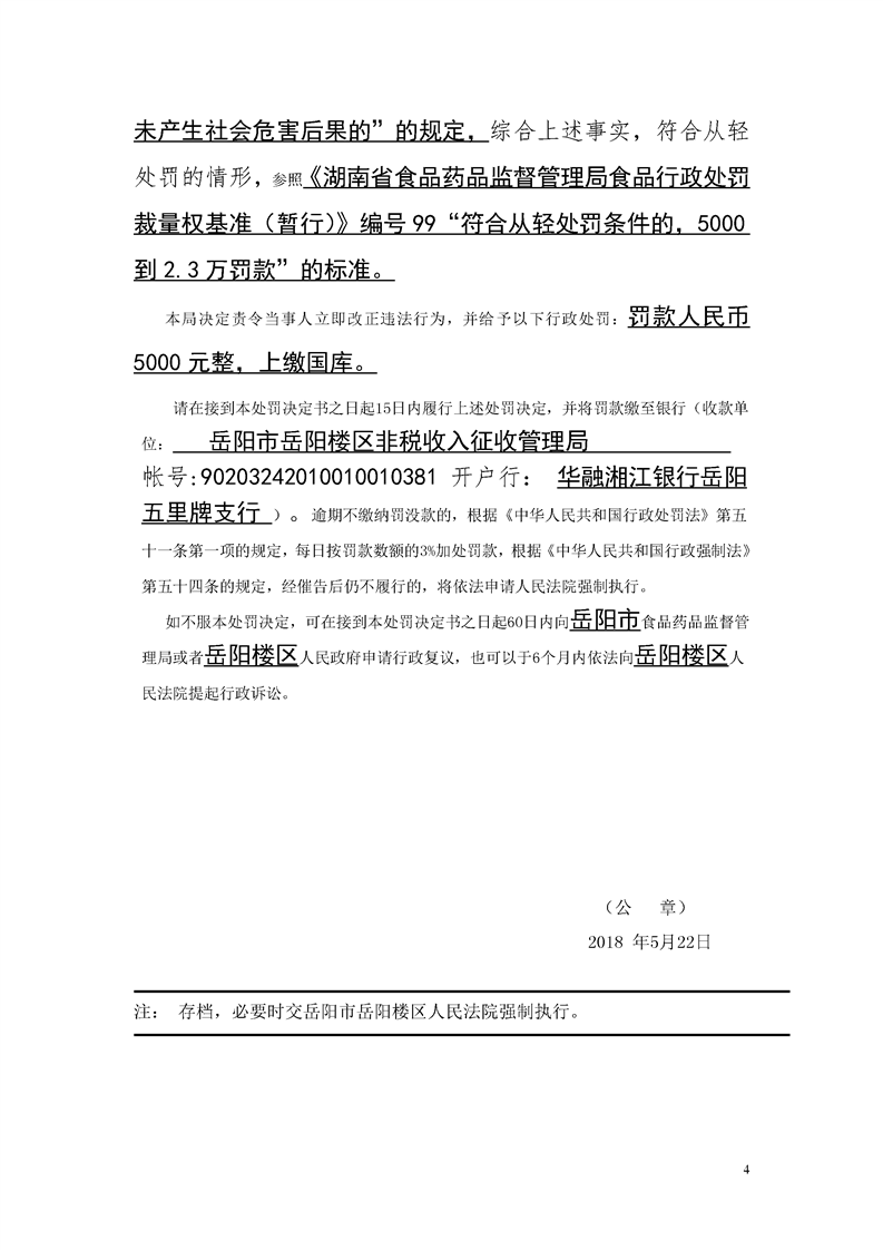 2018年5月份岳阳楼区食品药品监督管理局行政处罚案件信息公示