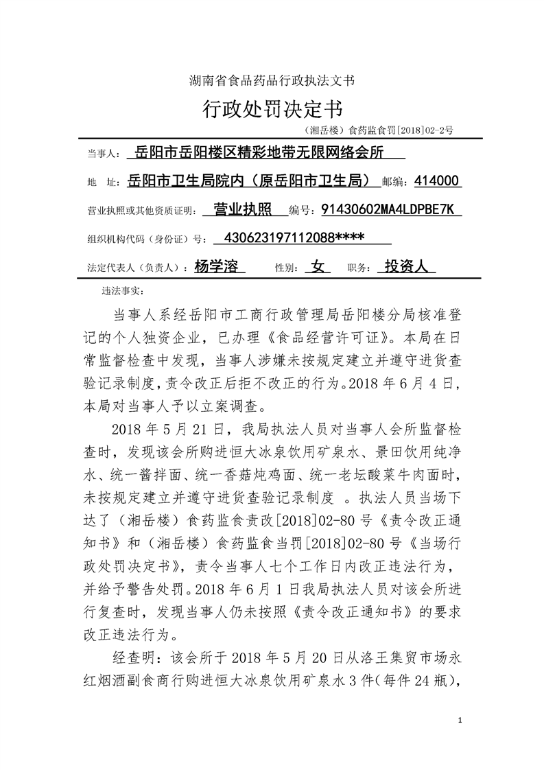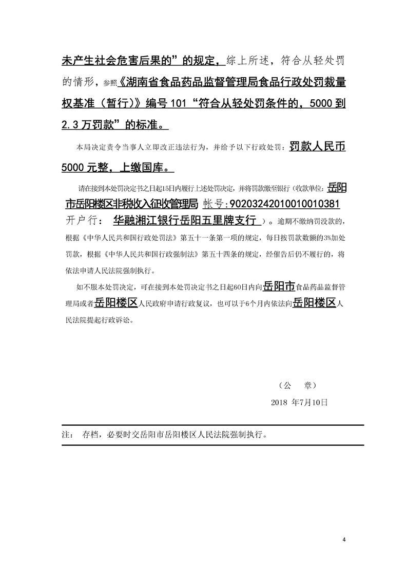 岳阳楼区食品药品监督管理局行政处罚文书公示(2018年7月第一期)